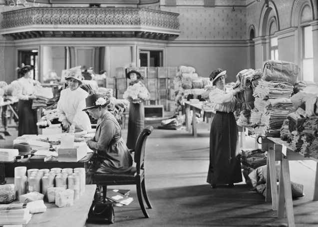 У серпні 1914 року почалася війна, офіс національної штаб-квартири Канадського Червоного Хреста в Торонто був завалений речами, починаючи від плащів, форми, до зламаних меблів, які надсилали люди, сподіваючись, що їх можна буде використати для допомоги хворим, пораненим солдатам.
