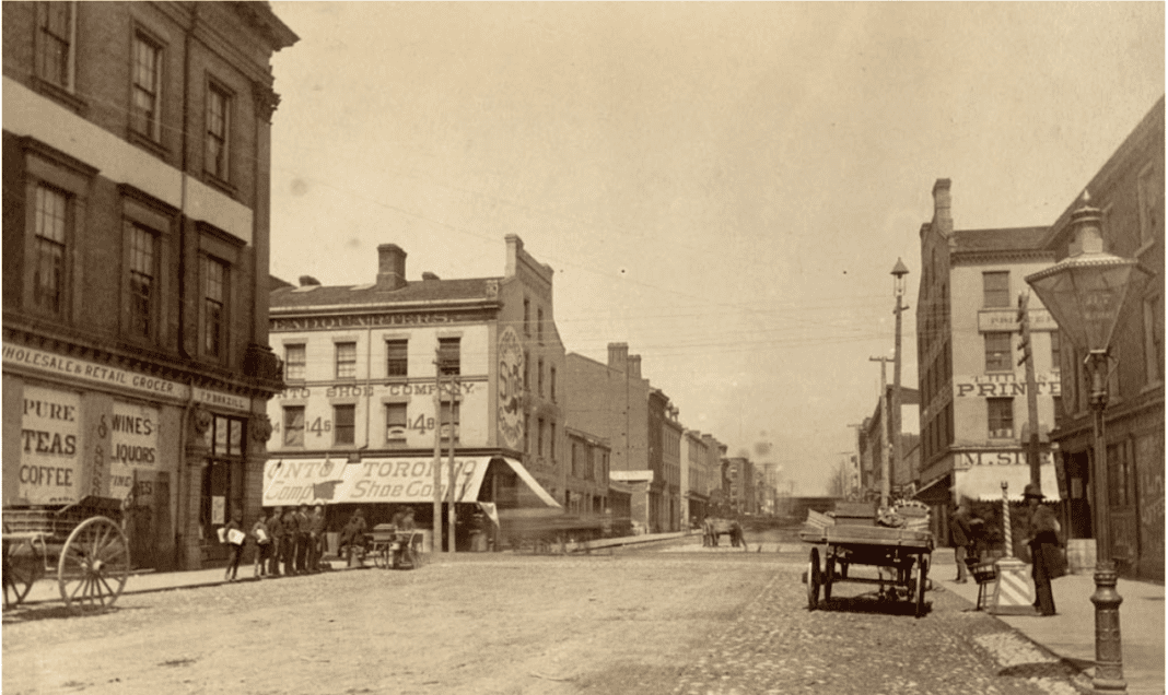 У 1834 році місто зареєстрували, і Йорк став Торонто. Це території, що обмежувалися Парламент-стріт на сході, Батерст-стріт на заході, берегом озера на півдні та 400 ярдів на північ від Квін-стріт (тоді називалася Лот) на півночі. Поза цією місцевістю – на захід до Дафферін-стріт, на схід до річки Дон і на північ до Блур-стріт – розташовувалися «вільності», з яких місто пізніше виділяло нові райони. На північ від Блура місцевий пивовар Джозеф Блур і шериф Вільям Джарвіс уже складали плани щодо села Йорквіль. У 1827 році відкрився перший університет, який тоді називався Королівським коледжем (пізніше перейменований на Університет Торонто). Це було інтелектуальним досягненням, але також і естетичним, оскільки університет став окрасою міста.